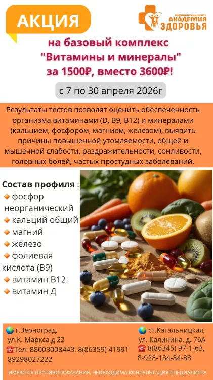 Акция "Витамины и минералы" за 1500 руб, вместо 3600 руб.