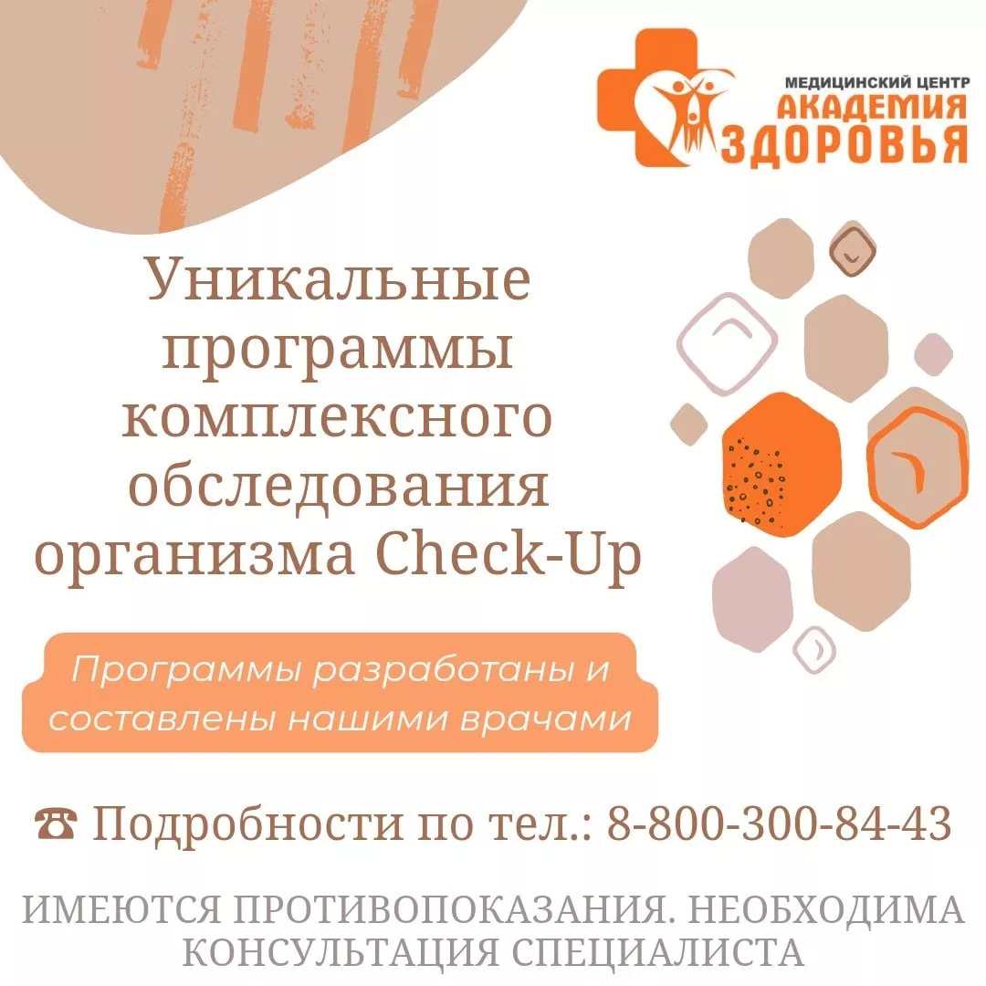 Медицинский центр "Академия Здоровья" предлагает своим пациентам уникальные программы комплексного обследования организма Check-Up, позволяющие оценить состояние Вашего здоровья по выбранному направлению, в максимально короткий период времени и по приемлемым ценам.