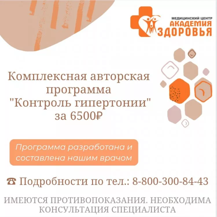 Комплексная авторская программа "Контроль гипертонии" за 6500 рублей.